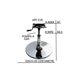 KIT PER SEDIA O SGABELLO GIREVOLE COMPLETO DI POMPA A GAS,PIASTRA SGABELLO ART.986 ,BASE A DISCO IN ACCIAIO CROMATO DIAMETRO 45 CENTIMETRI , MISURE , ALTEZZA MINIMA 34,5 CENTIMETRI -ALTEZZA MASSIMA 47 CENTIMETRI