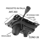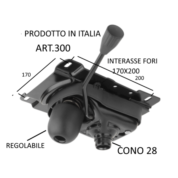 Meccanismo per sedia girevole  cono diametro 28 con comando leva ,verniciato nero . interasse fori   dal 150 max 170×200
