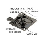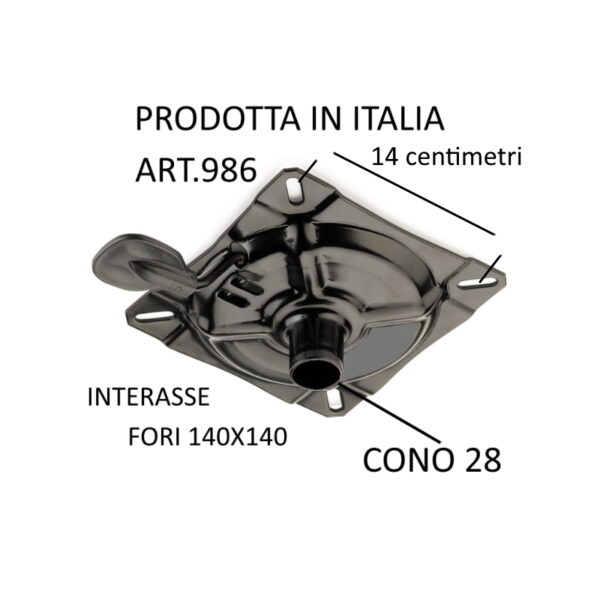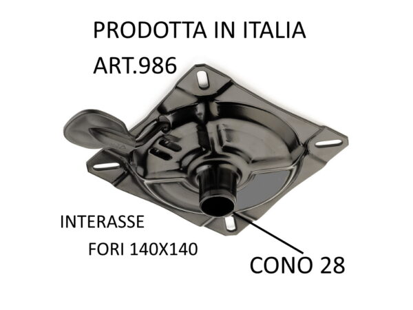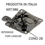 Piastra per sgabello ,  cono diametro 28 con comando leva . interasse fori  140×140   verniciata nero